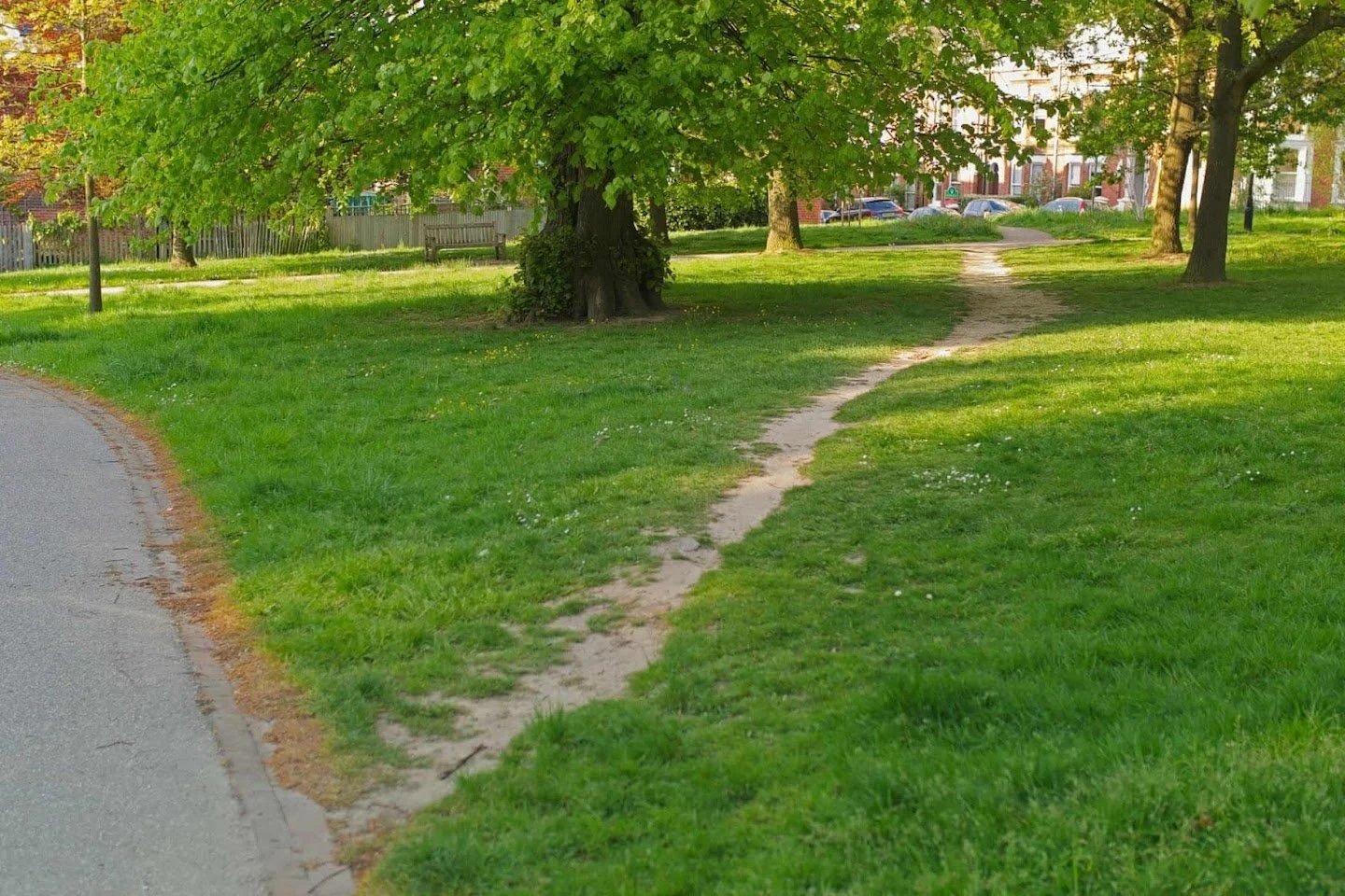 The concept of aging is shaped by social behaviors. This is seen in things like the path of least resistance worn into the ground or the tradition of rubbing statues for good luck.